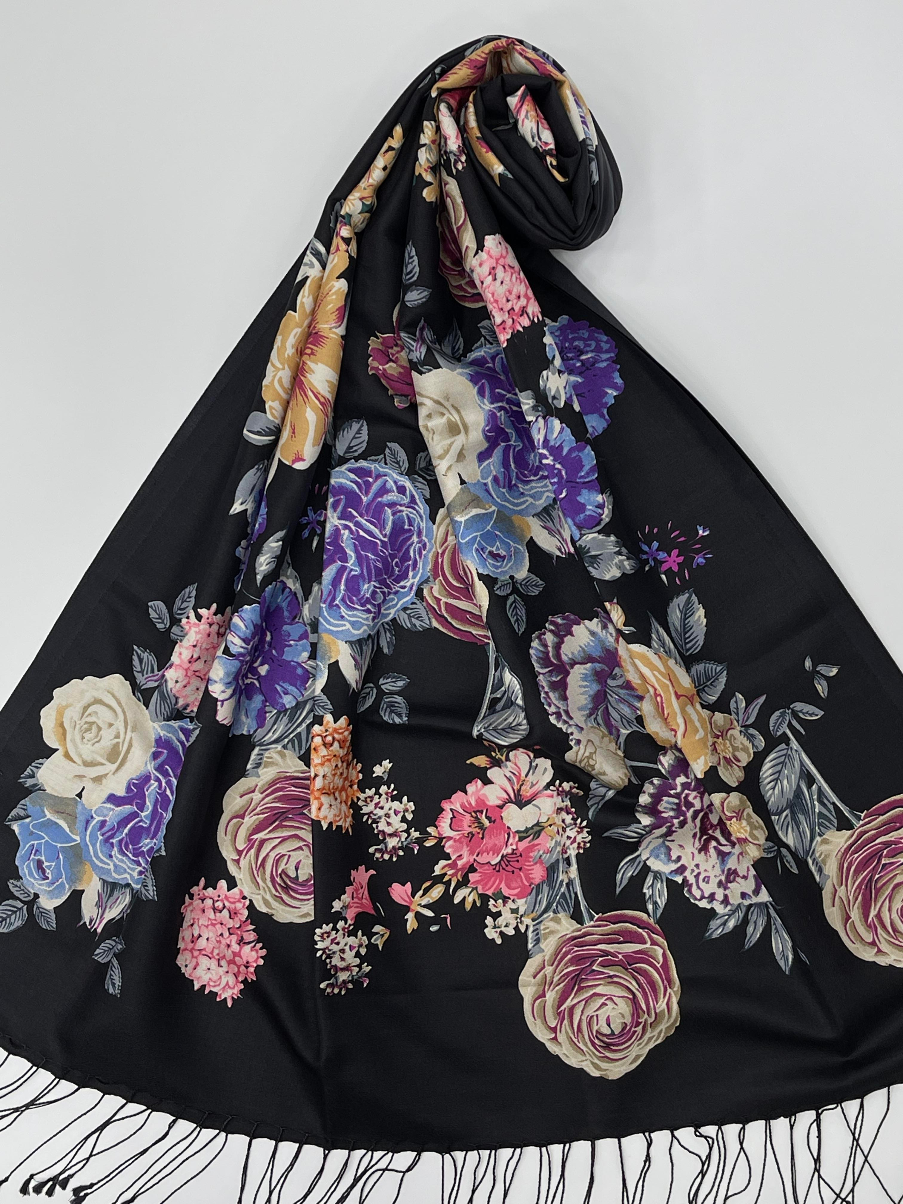 İpekevi İrem Bağı Desenli İpek Şal Siyah